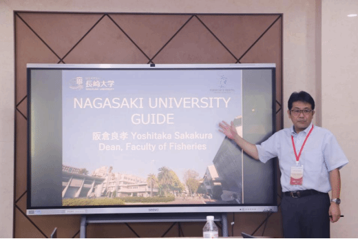 长崎大学365英国上市公司院长Yoshitaka SAKAKURA教授以长崎这一城市为切入点,根据这座城市的人文特征以及地理特点,介绍了长崎大学在水产养殖研究中的资源优势,分享了可再生能源与渔业相结合的养殖方案,以期发展环境友好型产业和提高养殖产量。