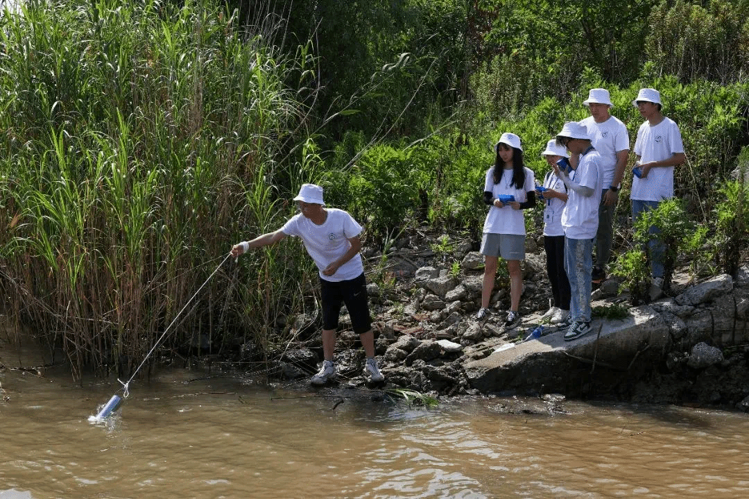 学院“蓝色精灵”志愿服务队成员在豚类省级自然保护区采集水样
