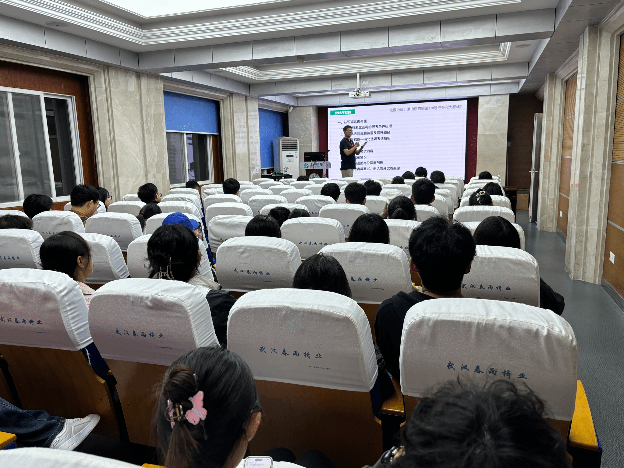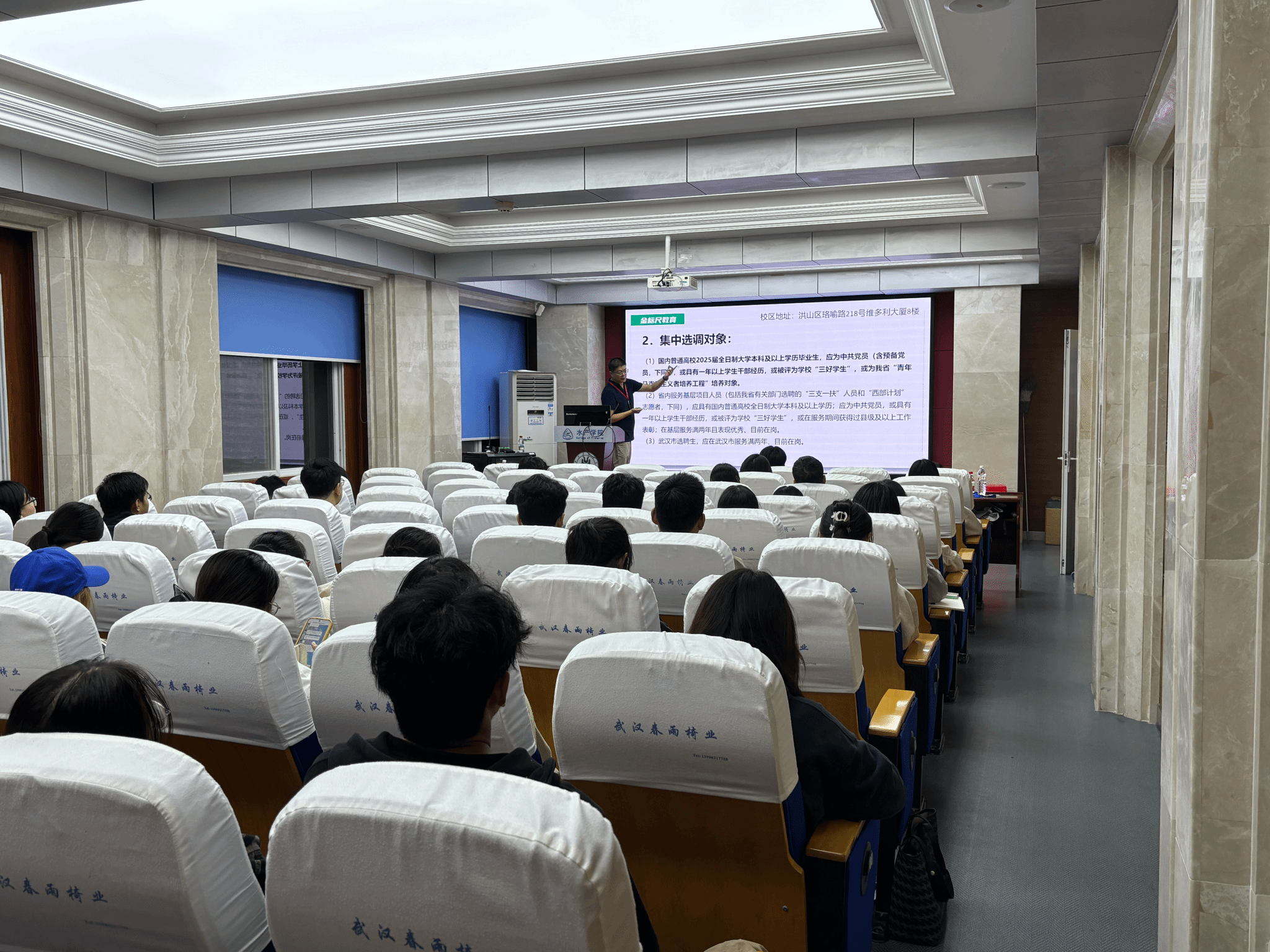 精准服务学生就业需求,提升学子公职考试竞争力,2025年10月15日晚,365英国上市公司特邀金标尺公考培训机构资深讲师张轩,为有意投身公共部门的同学们带来一场内容丰富、讲解生动的公务员考试培训讲座。本次讲座聚焦选调生政策与国家公务员考试两大核心板块,旨在为学子们的公职之路指引方向、夯实基础。