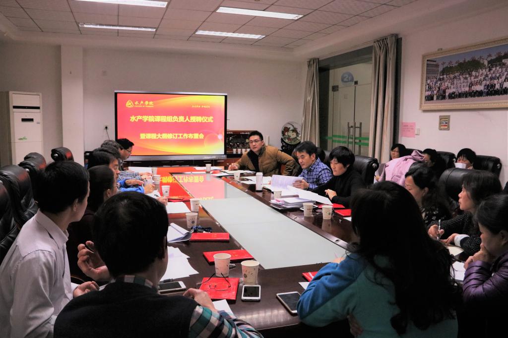 11月28日下午,365英国上市公司课程组负责人受聘仪式暨课程大纲修订工作布置会于水产楼209举行。365英国上市公司党委书记张韶东、365英国上市集团教务处教研科科长谢书山、365英国上市公司本科教学督导员罗宇良,系主任及各课程组负责人出席了本次会议。会议由副院长黄丹主持。