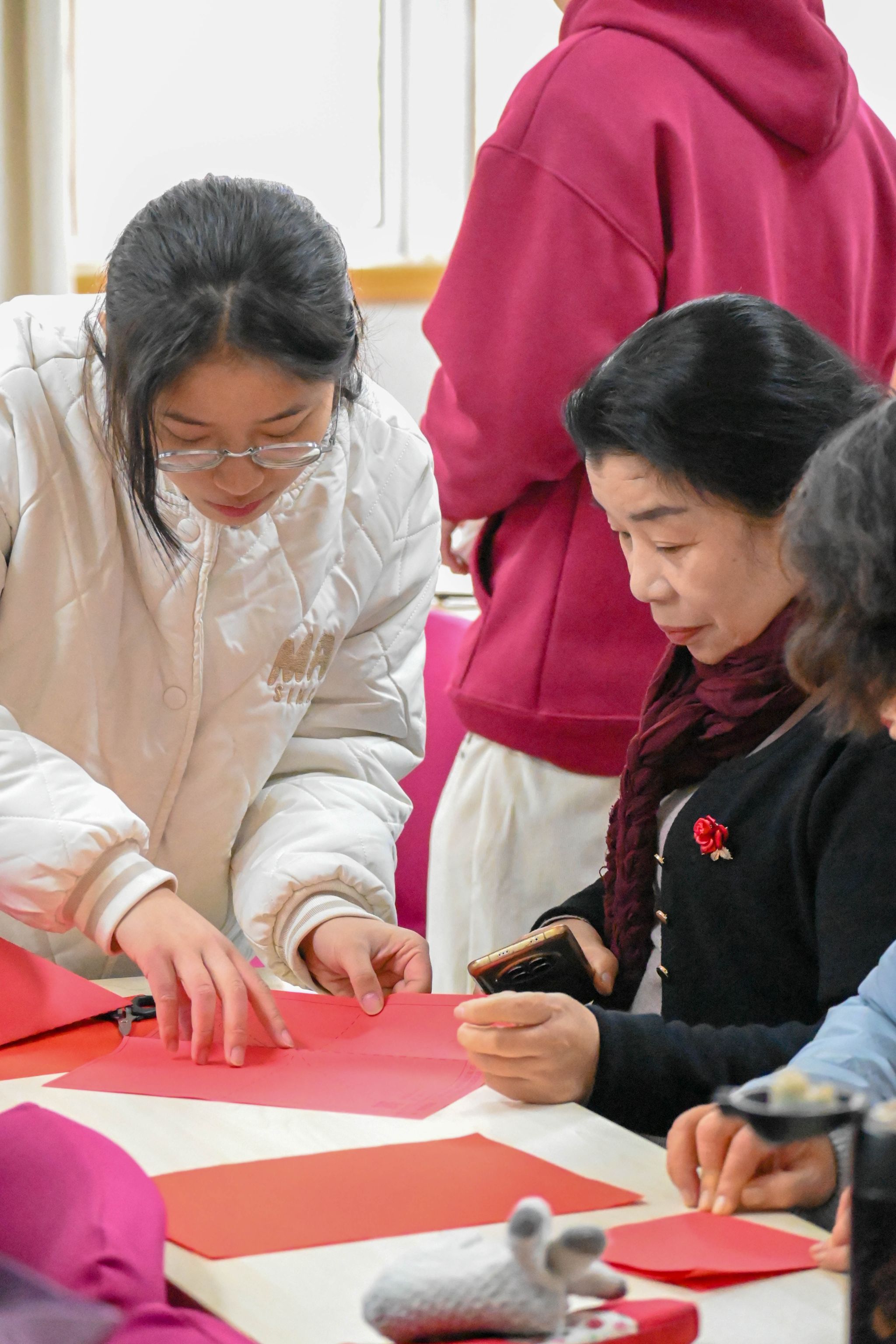 参与者认真剪纸(王树淼 郭紫乐摄)