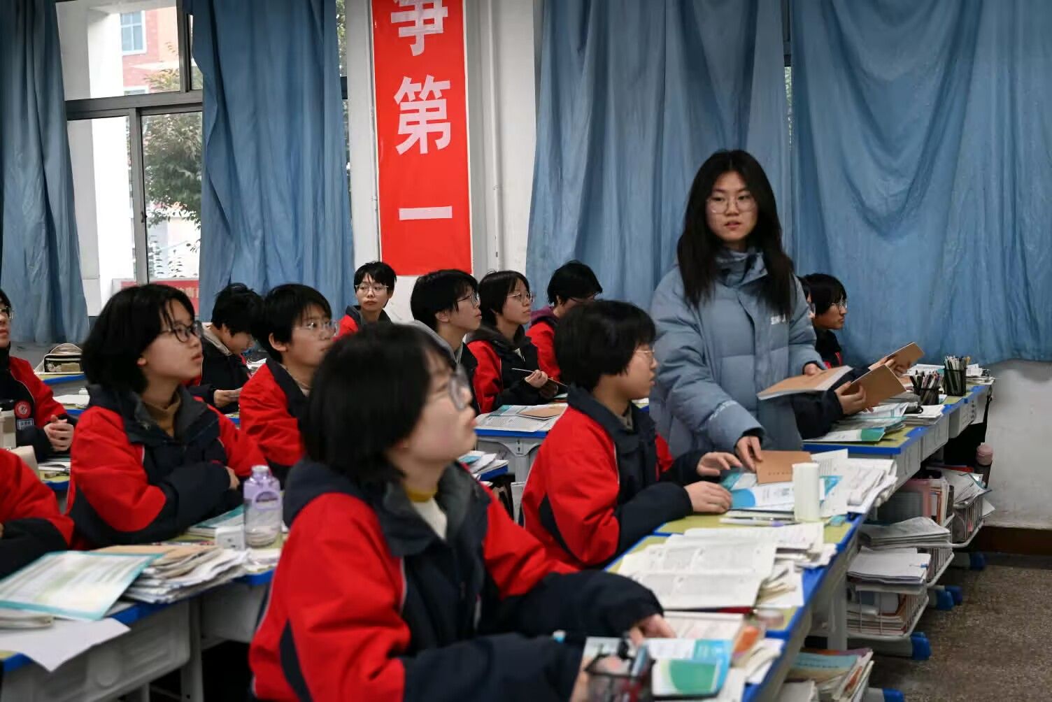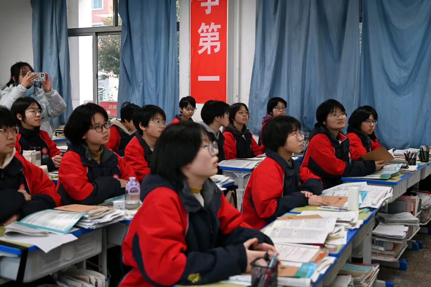 同学们在认真听团队宣讲(刘冰杰摄)