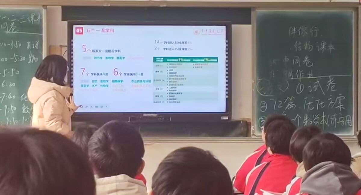 走入班级,热烈的掌声响起,火红的校服与少年脸上洋溢的笑容交织,流露出青春的昂扬风采。队员侯晓慧首先站上讲台,以自信的姿态、对华中农大匪浅的了解,向同学们介绍这所百年名校的底蕴与成就。台下不时传来赞叹与惊呼,让这段悠久的历史仿佛穿越时空与现实相拥,传承的桥梁就此搭建,回访团深感责任重大。