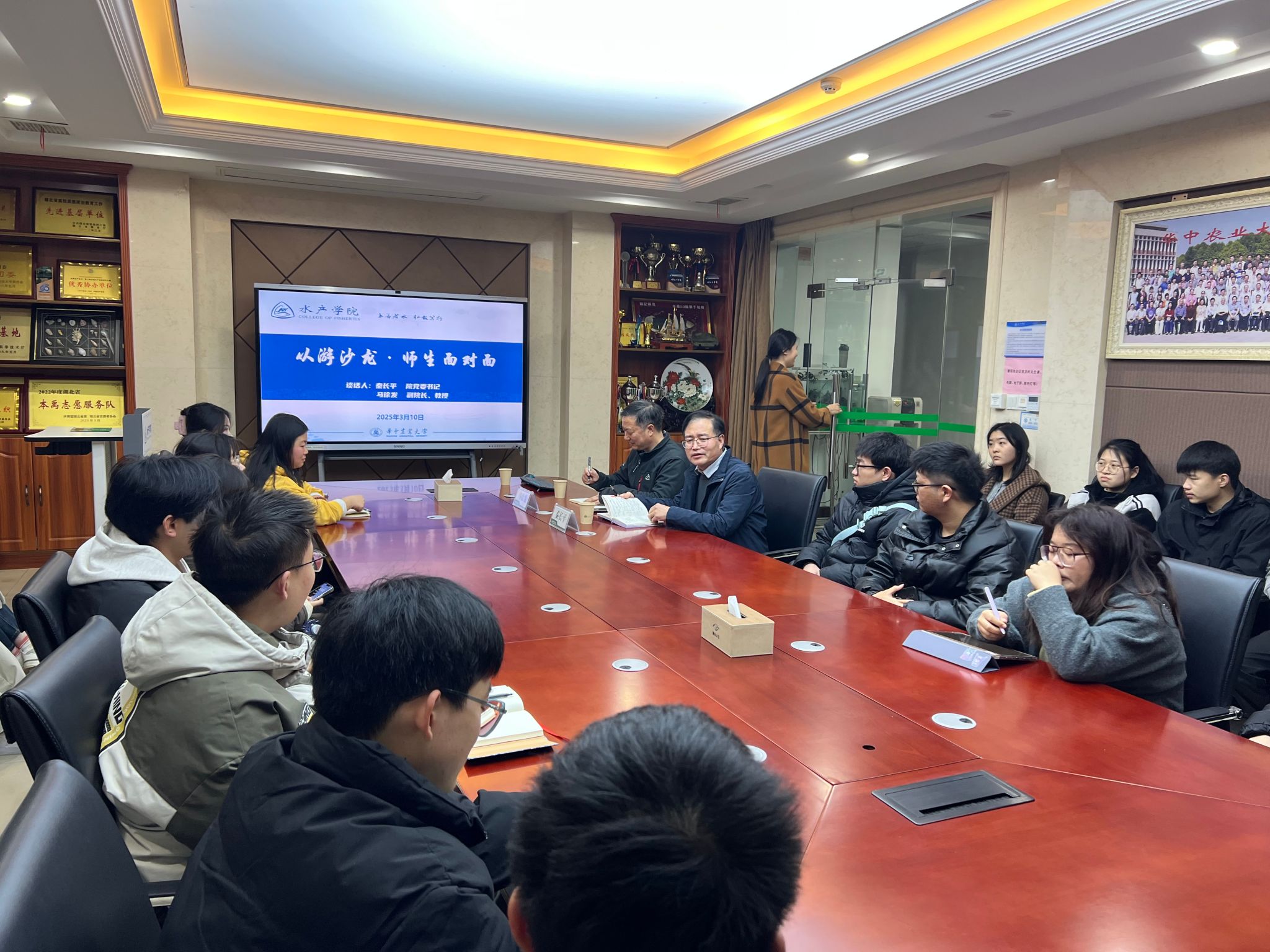 3月10日晚,我院“从游沙龙”师生面对面活动在水产楼A201举行,学院党委书记秦长平、副院长马徐发与同学们座谈交流,学位与研究生教育秘书庄子梦主持活动。