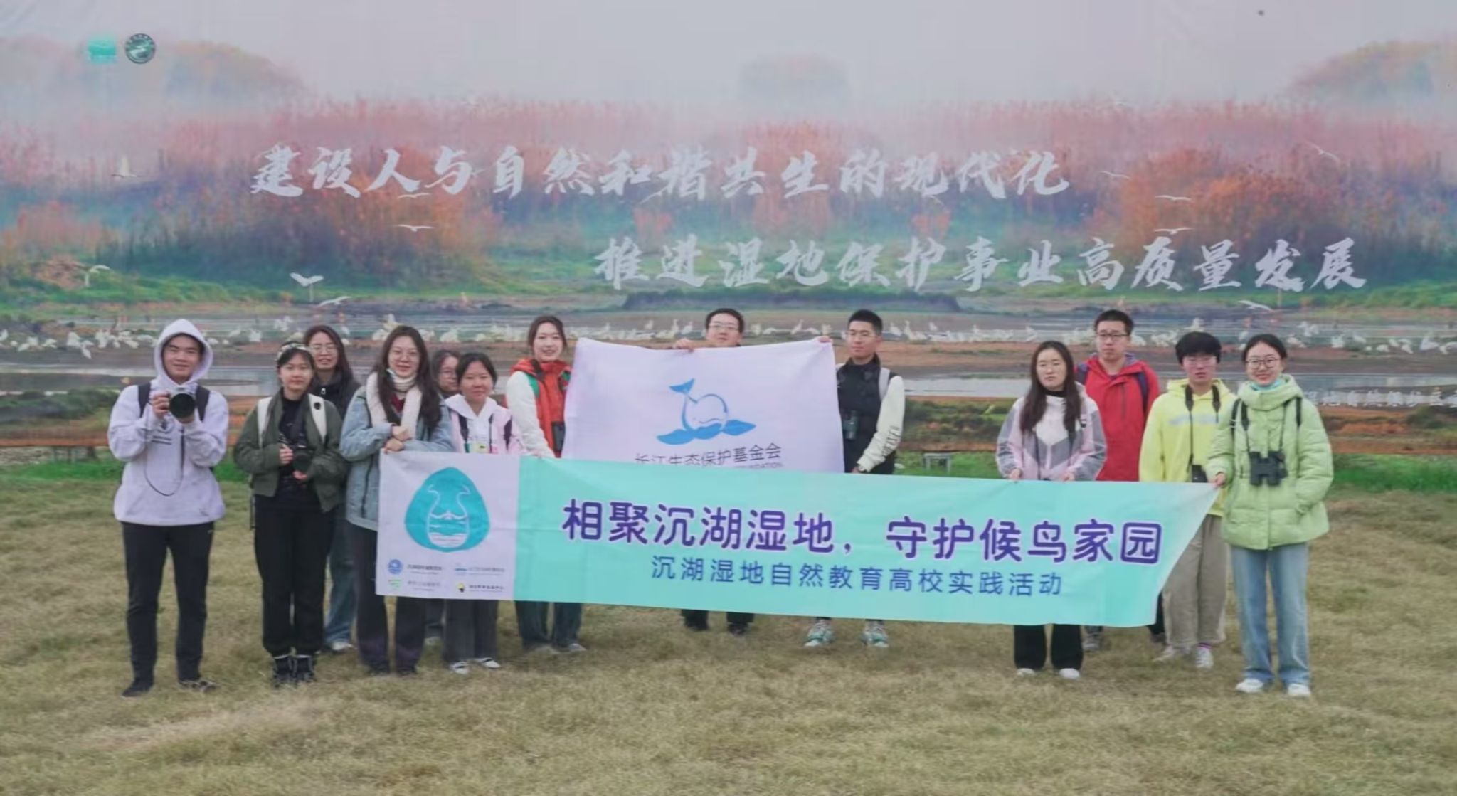 蔡文娟参加蓝色精灵志愿服务队沉湖湿地观鸟活动(右四)(蔡文娟摄)