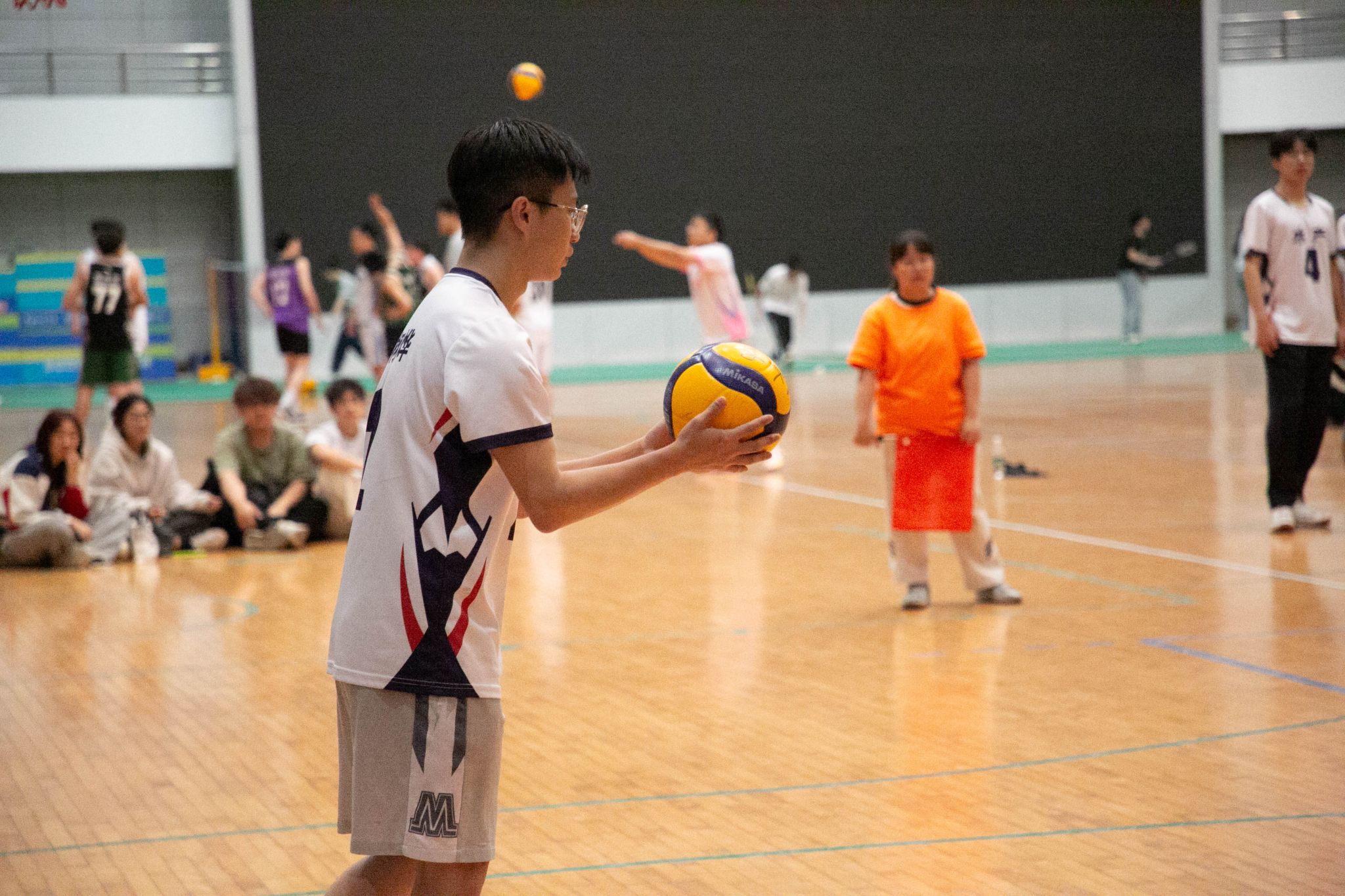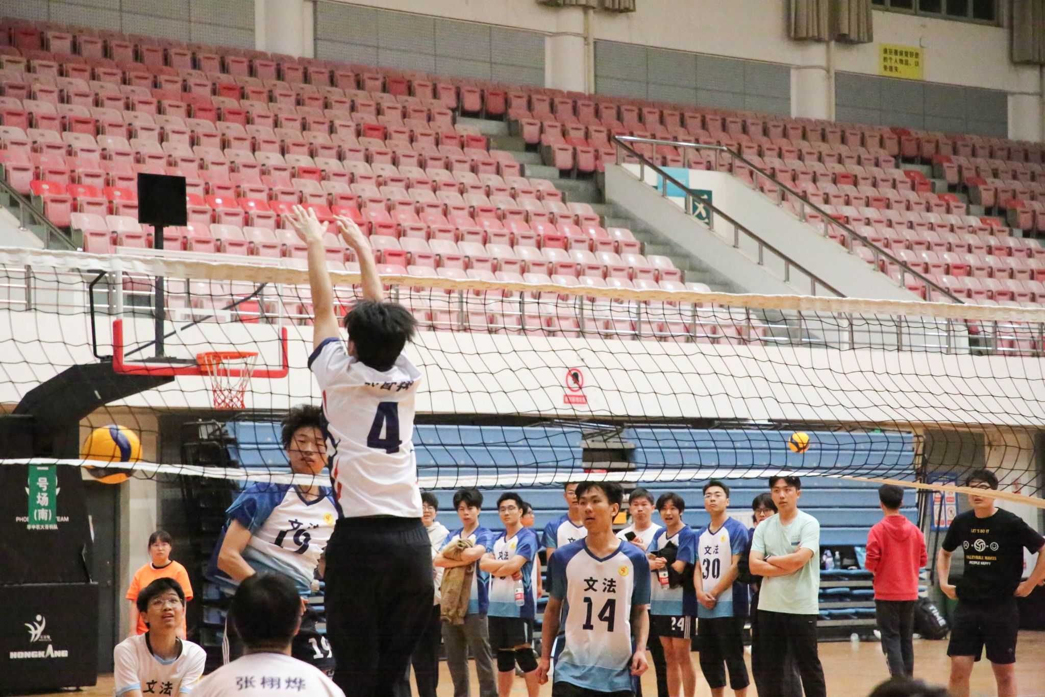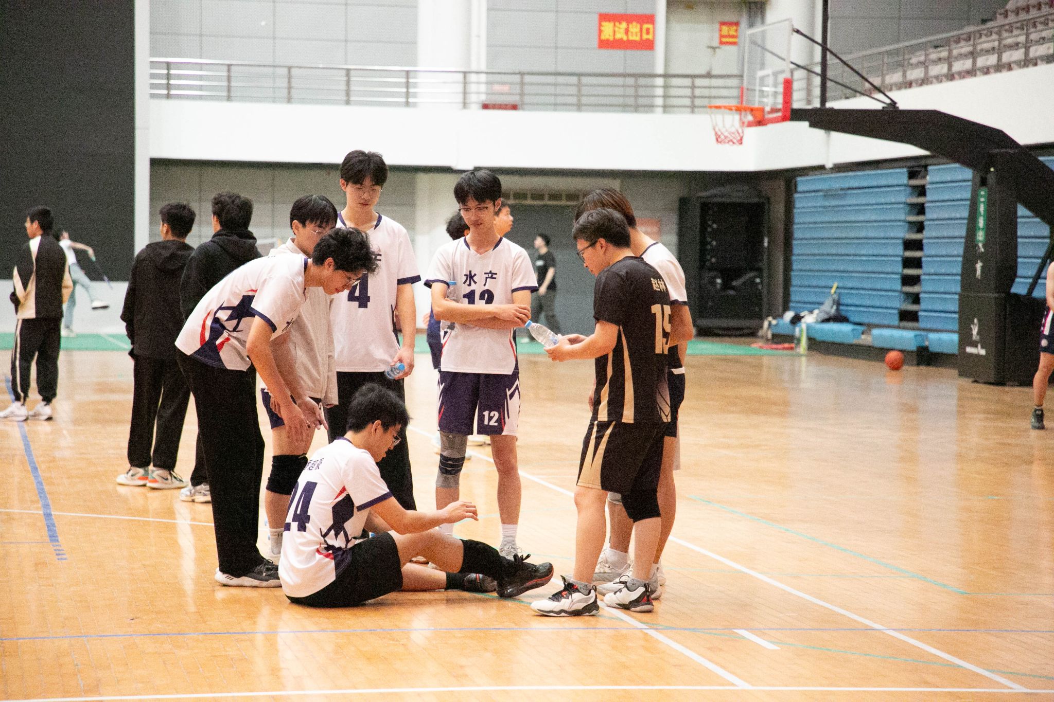 水产男排开局强势发力,张浩宇以一记斜线暴扣斩获首分,黎浩宇连续跳飘发球助队伍3-0占得先机。文法男排凭借严密拦防将比分反超至11-10,关键时刻张栩烨机智吊球扳平战局。双方胶着对抗至局末,水产男排以25-23力克对手,成功拿下首局胜利。