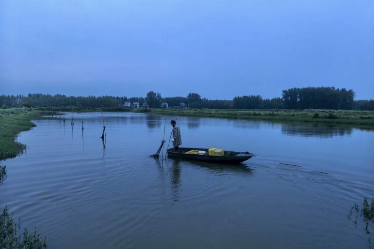 25-7-17清晨老新镇龚德茂收地笼图(李十庆摄)