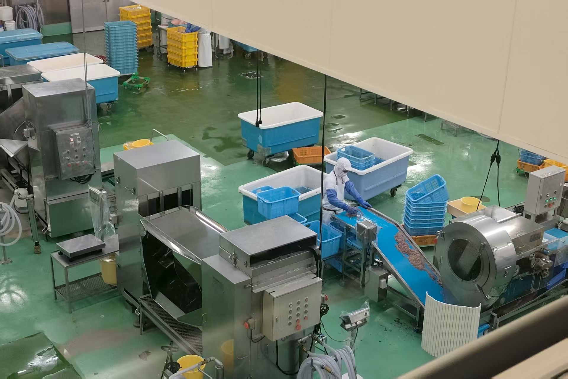 二组成员走访了函馆的水产企业工厂布目有限公司。社长通过一个视频向同学们全面介绍了鱿鱼的捕捞、加工、生产、销售全流程。讲解结束后,同学们参观了工厂车间,观看鱿鱼、三文鱼的处理过程,社长耐心解答同学们的疑问。近年来鱿鱼捕捞量的急剧下降引发了同学们对于人类活动和环境变化的思考。