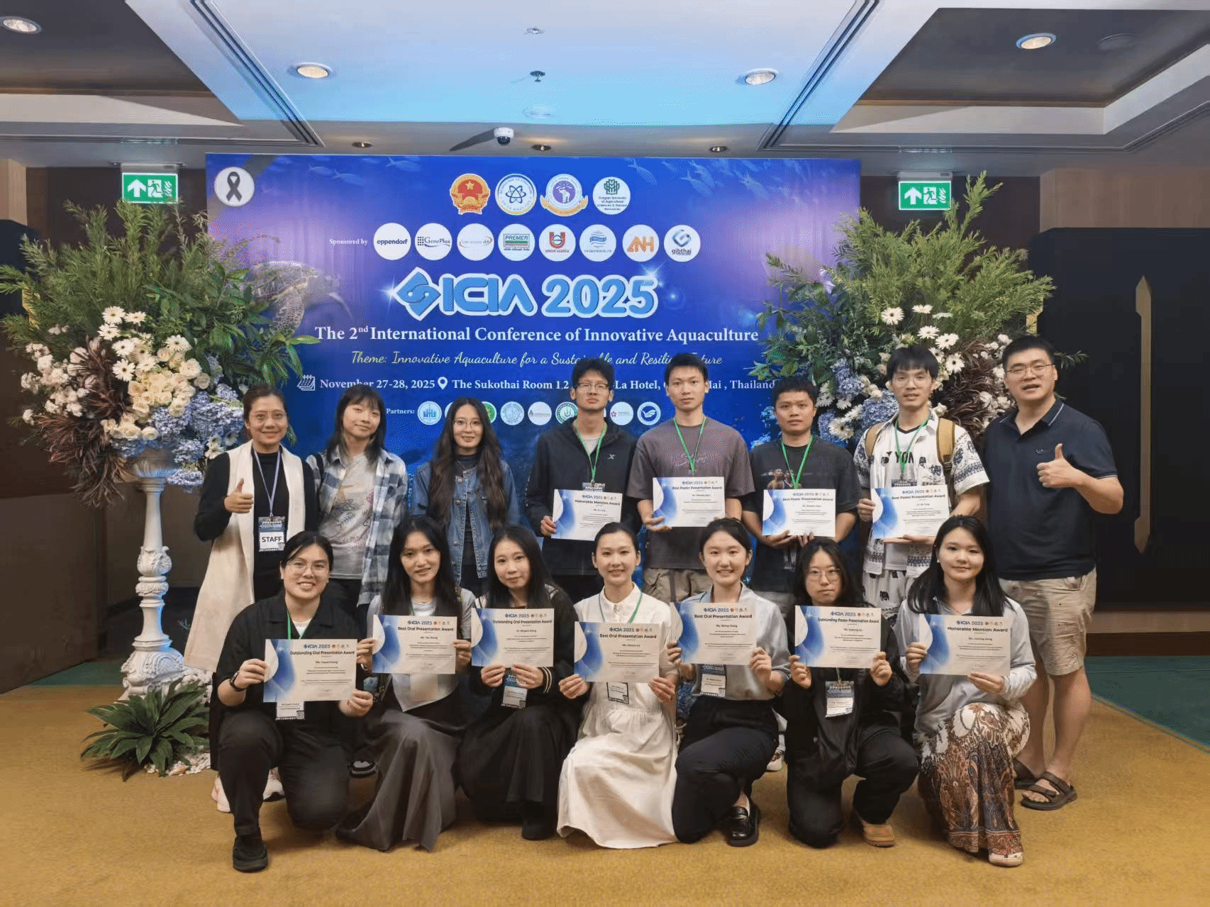 近日,我院13名研究生应邀赴泰国清迈参加第二届国际创新型水产养殖会议(ICIA-2025),斩获11项荣誉。本次学术出访由我院副教授王庆超博士带队参加。