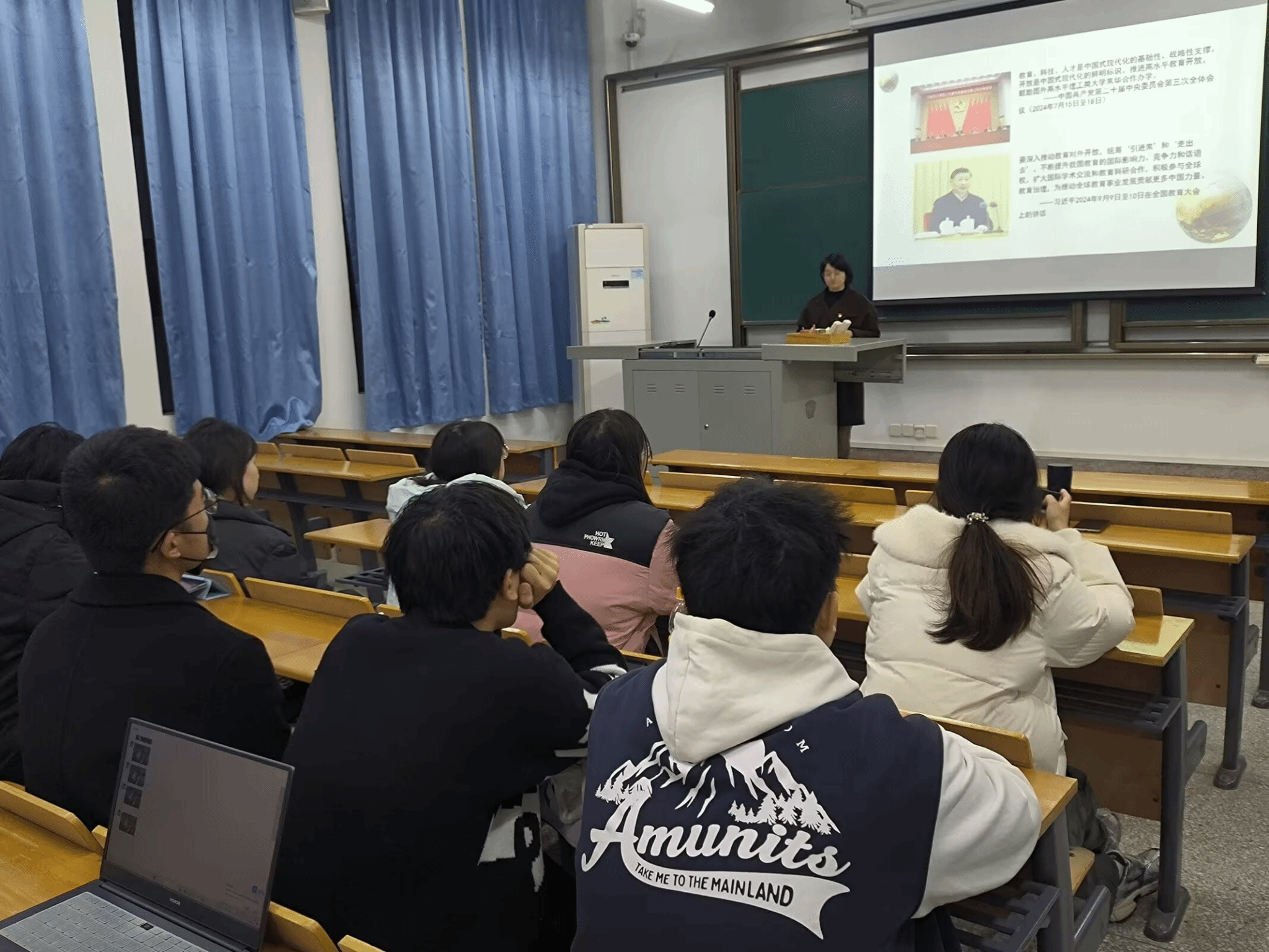 曹玉琼根据习近平总书记在党的二十届三中全会和全国教育大会精神上的重要讲话,来阐释为什么要深入推动教育高水平对外开放、如何才能深入推动教育高水平对外开放、以及在深入推动教育高水平对外开放的过程中青年大学生党员何为三个问题。