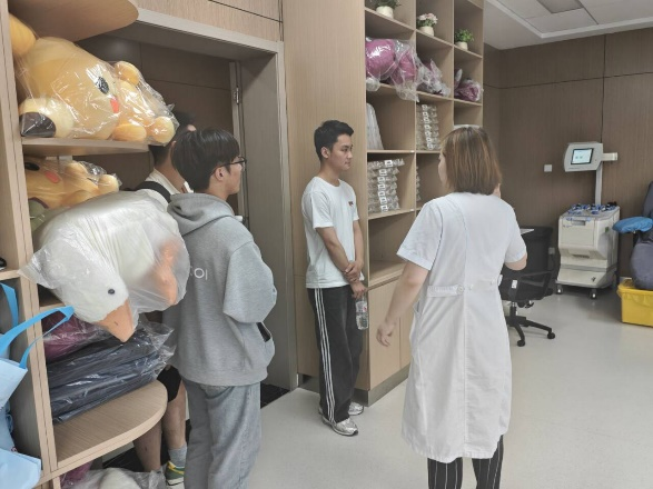 宣讲结束后工作人员带领同学们对设施进行了参观。一楼设置有“血液成分制备”和“血液储存供应”部门,二楼为“成分献血”和“全血献血”服务部门,三楼为血液集中化验实验室和确证实验室,四楼为输血研究所和血液光电实验室。献血的环境十分安静整洁,献血的过程很舒适,采集的血液能够在安全的流程中输入需要的人的体内。
