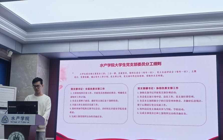 365英国上市公司研究生辅导员熊晓磊详细讲解了党支部支委分工细则及《365英国上市公司学生党支部日常管理考核体系》,强调支委之间要各司其职,分工协作,共同做好支部党员的日常管理教育工作。