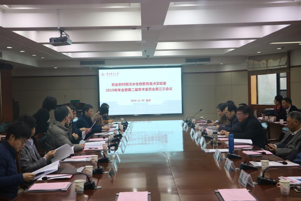 (通讯员田丁 供图宋子曦)11月30日下午两点,农业农村部淡水生物繁育重点实验室2019年年会暨第二届学术委员会第三次会议在国际学术交流中心六楼会议室举行。中国科学院水生所桂建芳研究员、解授启研究员、谢平研究员、中国水科院淡水渔业研究中心党委书记戈贤平研究员、中国水科院长江所所长邹桂伟研究员、湖北省水产局产业处处长汪亮,长江大学杨代勤教授、学校科学技术发展研究院常务副院长关桓达、我院领导班子和教师代表等30余人参会。