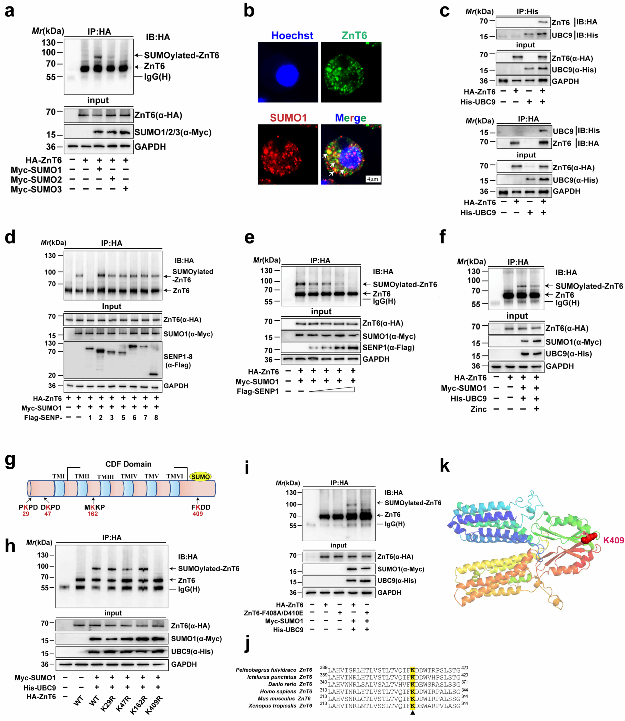 SUMO1介导ZnT6赖氨酸409位的SUMO化修饰