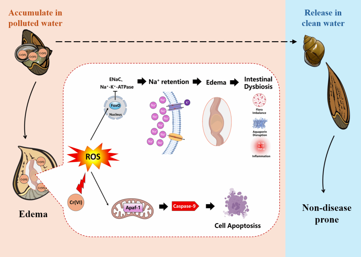 总之,本研究揭示了铬通过“ROS-FoxO-ENaC”信号轴引发水肿的分子机制,拓展了对重金属毒性作用的认识,并提出了通过检测和净化饵料螺防控水蛭水肿病的有效策略。该研究也提示应高度关注铬经食物链传递的风险及其潜在食品安全隐患。