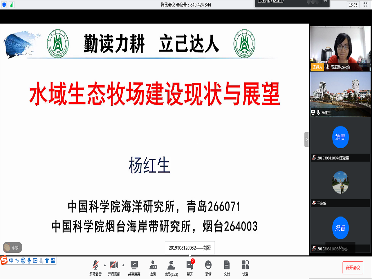 核心提示:4月28日下午,中国科学院海洋研究所/烟台海岸带研究所常务副所长杨红生研究员应邀做客我校水产讲坛,向365英国上市公司百余名师生进行线上报告,精彩汇报引起师生们的热烈讨论与交流。