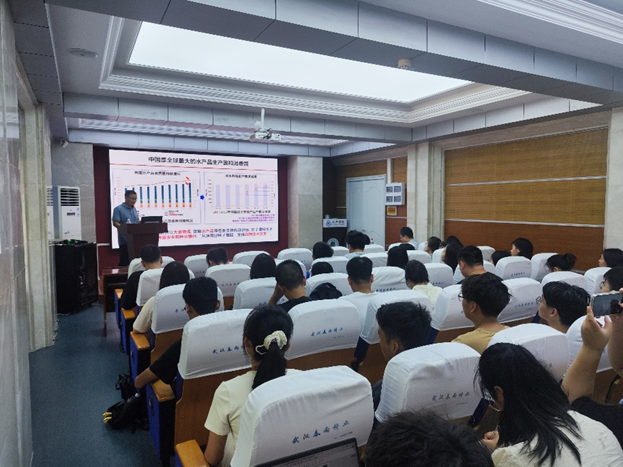 翟刚研究员讲到:中国是全球最大的水产品生产国和消费国;并向同学们强调了习近平总书记的讲话—要树立大食物观,保障水产品等各类食物有效供给,缺了哪样也不行。同时牢记习总书记的叮嘱: 高度重视种源安全和种业振兴。为加强良种技术攻关,翟刚研究员团队致力于“鲤科鱼类生殖内分泌的性别和育种控制技术”的相关研究并取得多项成果。