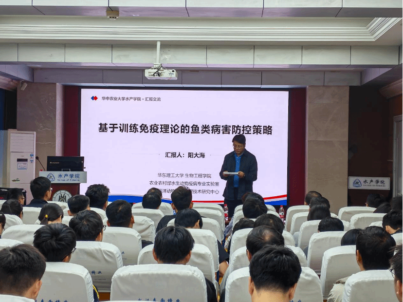 近日,我院2024年第21期(总410期)“水产讲坛”在水产楼天辰报告厅A105举行,特邀华东理工大学阳大海教授作了题为“基于训练免疫理论的鱼类病害防控策略”的分享。