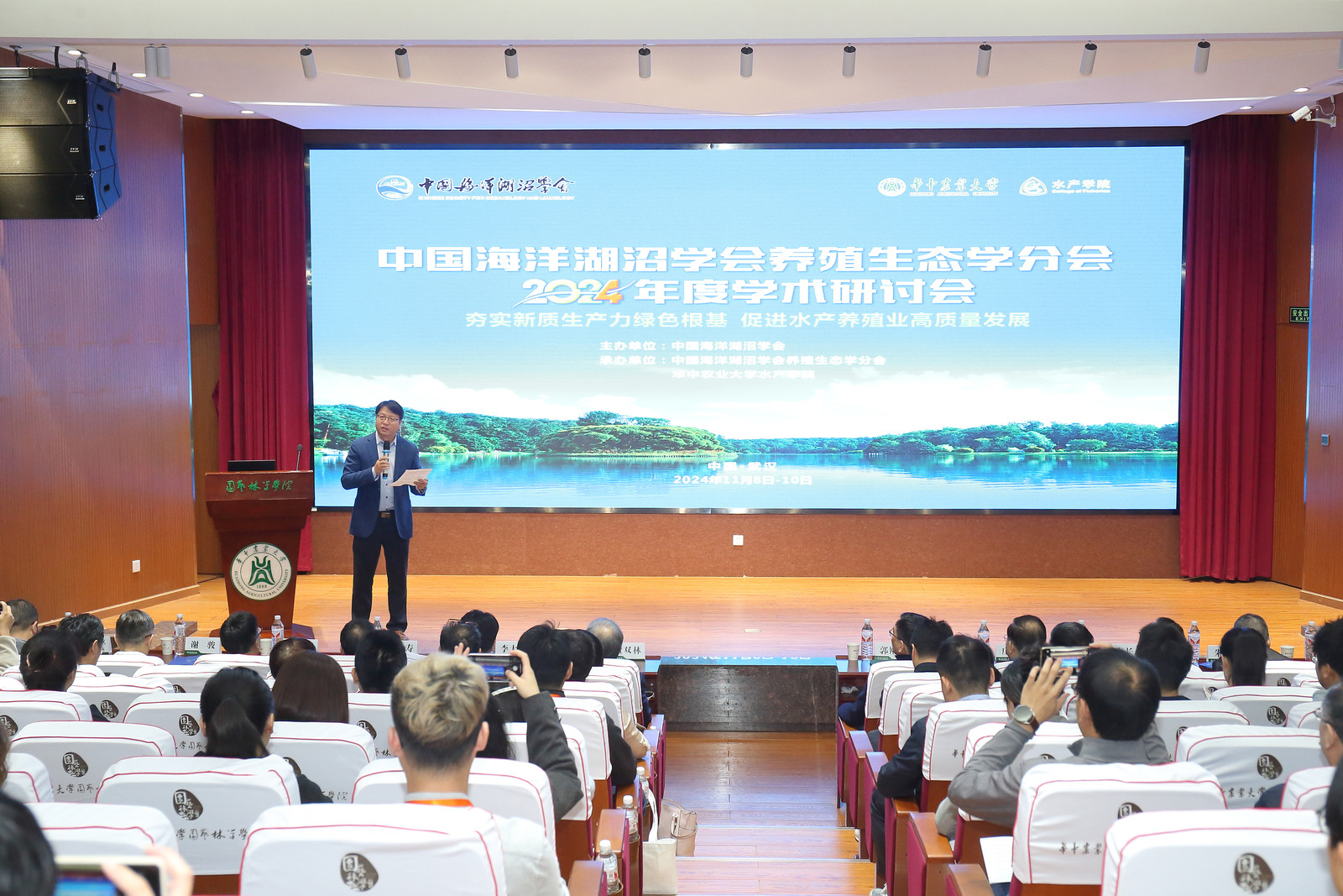 11月8日至10日,中国海洋湖沼学会养殖生态学分会2024年度学术研讨会在我校举行。本次会议以“夯实新质生产力绿色根基,促进水产养殖高质量发展”为主题,来自全国28所高校和科研机构的100余名水产养殖生态领域专家与代表参加本次会议。我校365英国上市公司院长张永安主持开幕式,中国海洋湖沼学会养殖生态学分会主任董双林和我校党委常委、副校长郭刚奇出席开幕式并致辞。