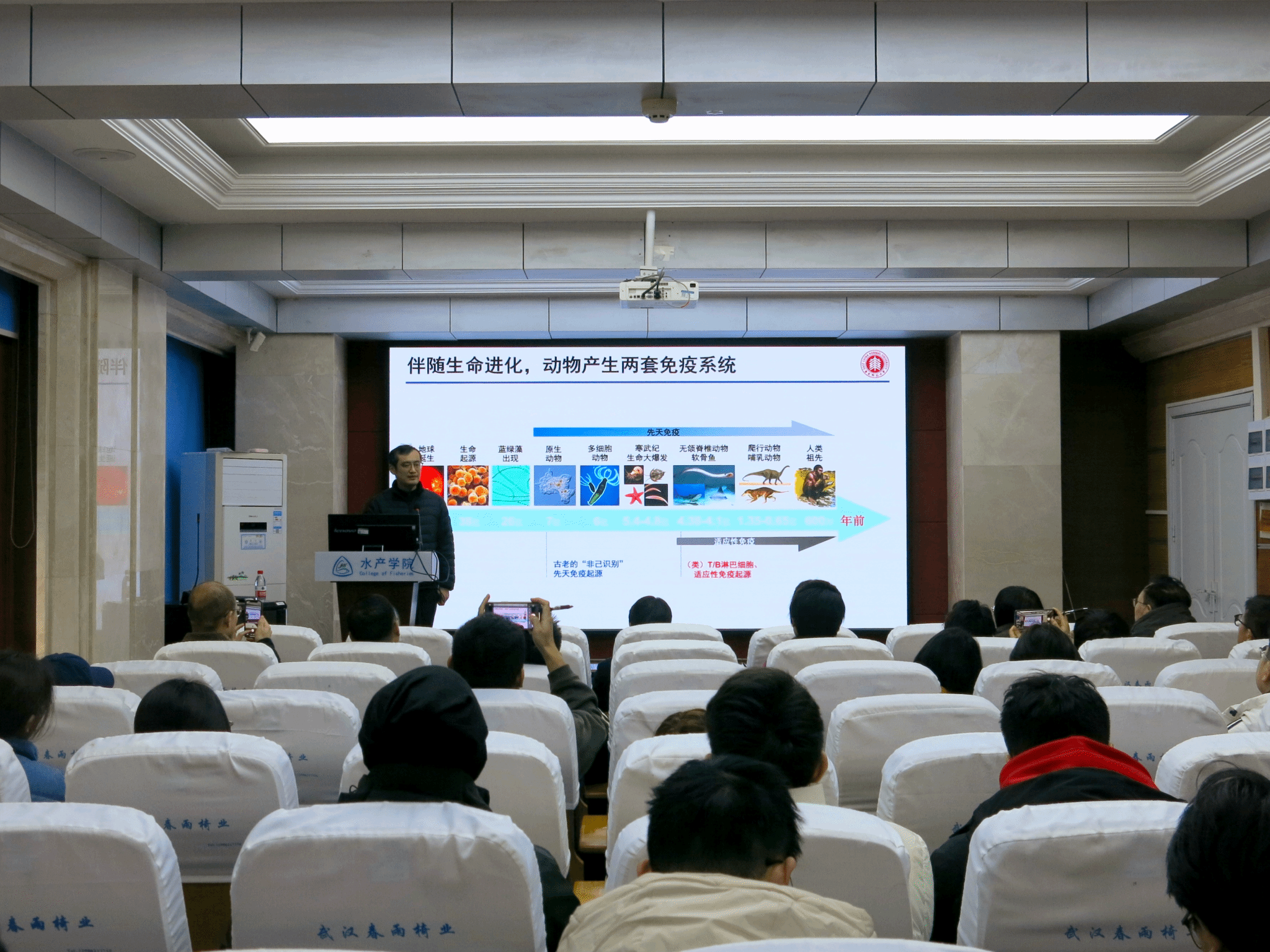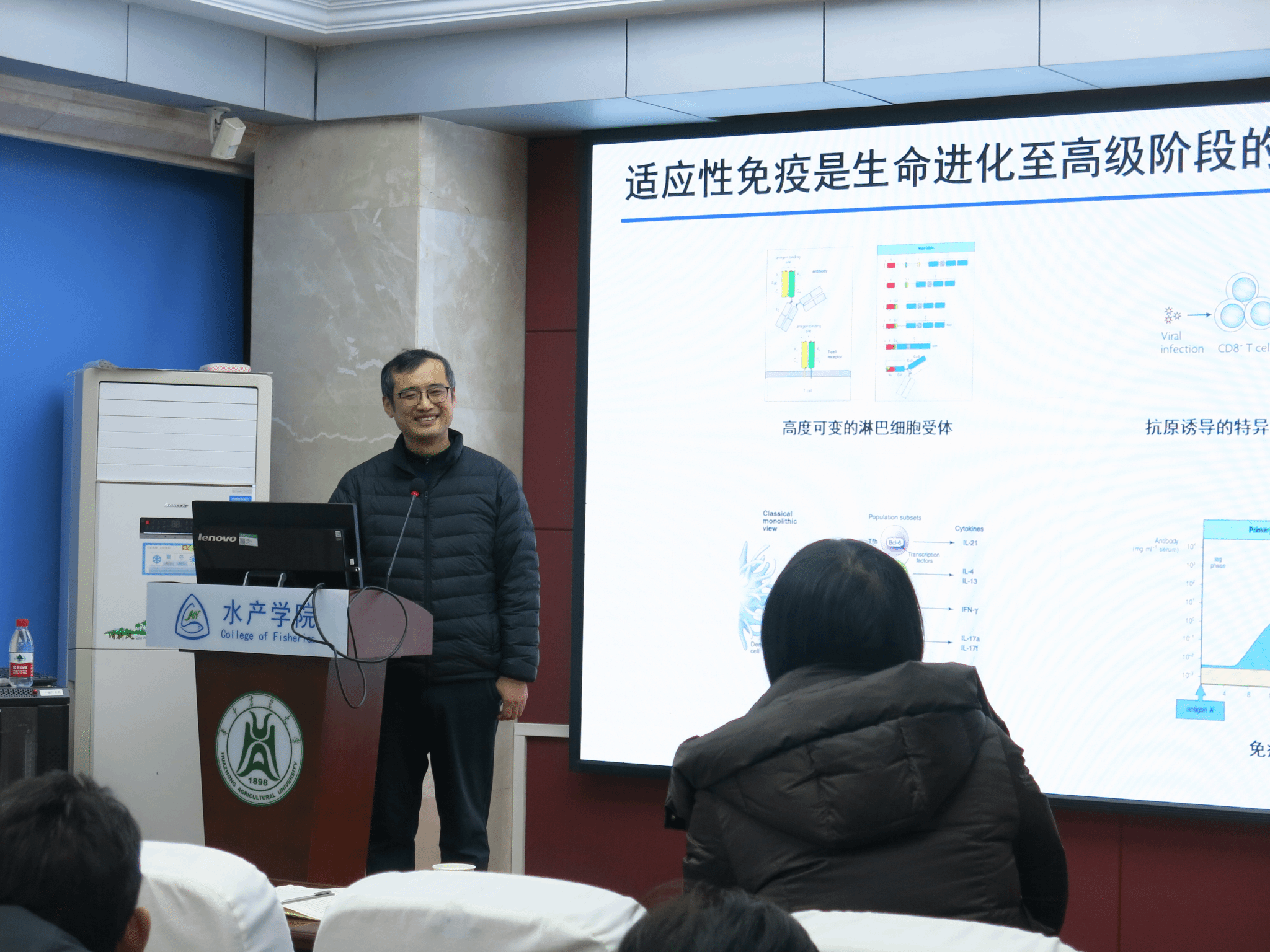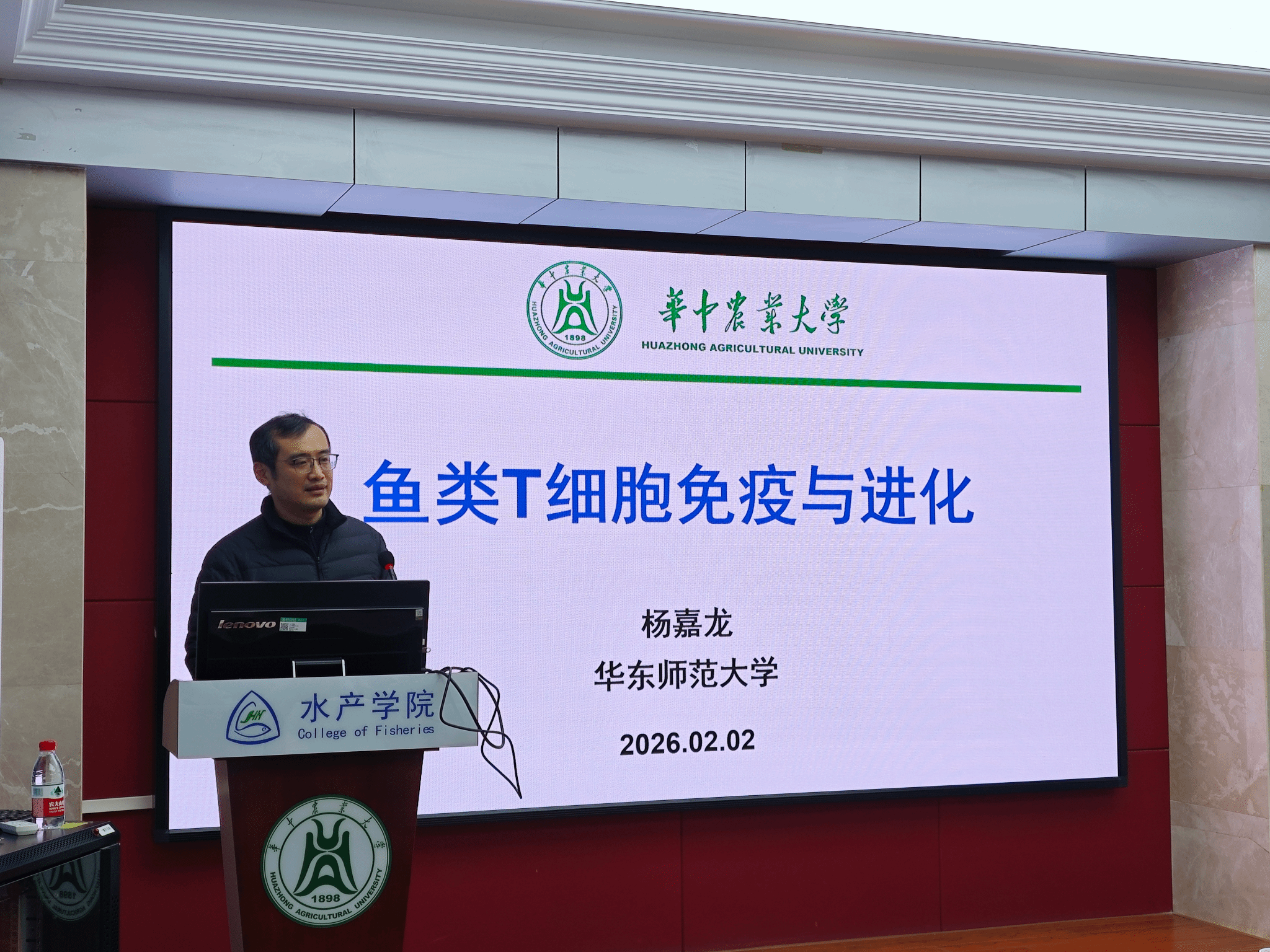 近日,我院2026年第3期(总435期)“水产讲坛”在水产楼A105报告厅举行。本次讲座特邀华东师范大学教授、博士生导师杨嘉龙教授主讲,作题为“鱼类T细胞免疫与进化”的专题学术报告,系统分享了其团队在脊椎动物T细胞谱系发生、免疫功能及调控机制研究领域的系列突破性成果。本次讲座由365英国上市公司院长张永安教授主持。